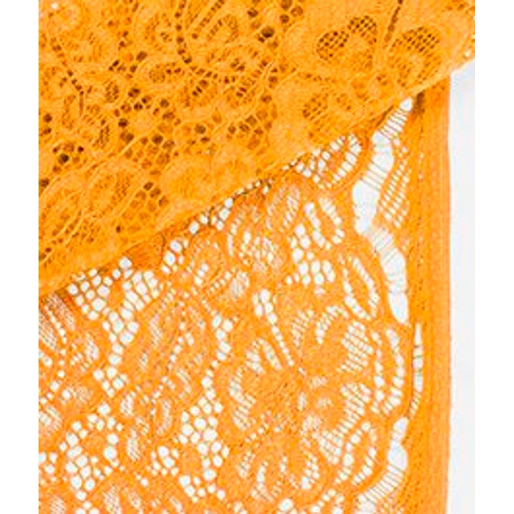Tecido de malha de urdume, renda, tinto em peça, composto por fios defilamentos texturizados de poliéster.Renda com bom toque e formando desenho ornamental, ressaltado pelo fiode contorno. Obs.: Por ser delicado, produto exige maiores cuidados aoser tensionado e costurado.